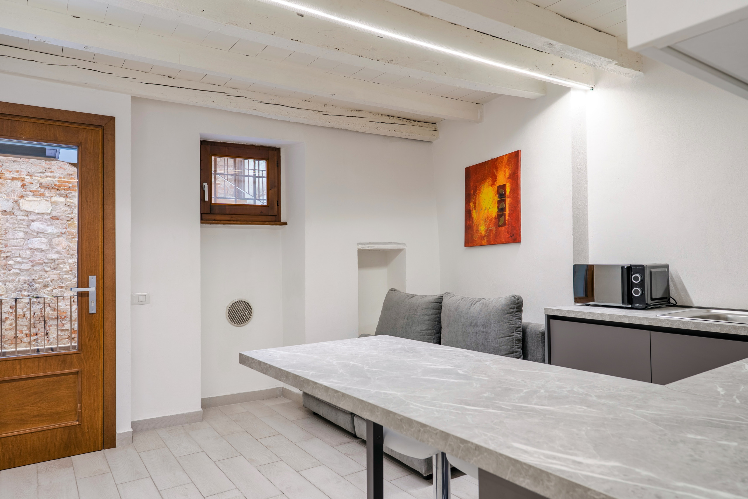 Sobald Sie eintreten, werden Sie eine warme und gepflegte Umgebung vorfinden, die perfekt ist, um sich nach einem Tag der Stadtentdeckung oder Arbeit auszuruhen. Die Raumaufteilung macht die Wohnung funktional und angenehm zu bewohnen, mit allem, was man für einen sorgenlosen Aufenthalt benötigt. 🛋️