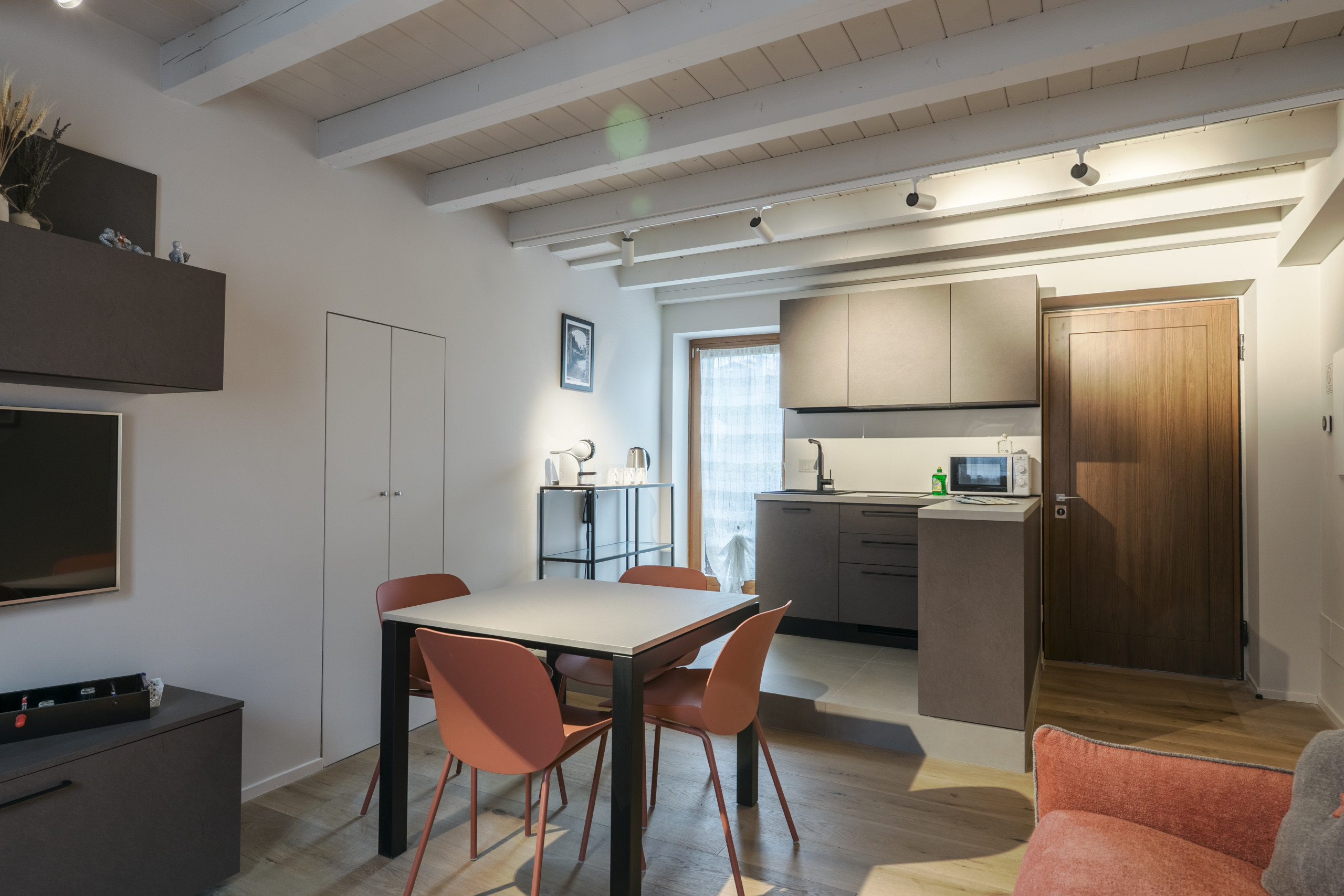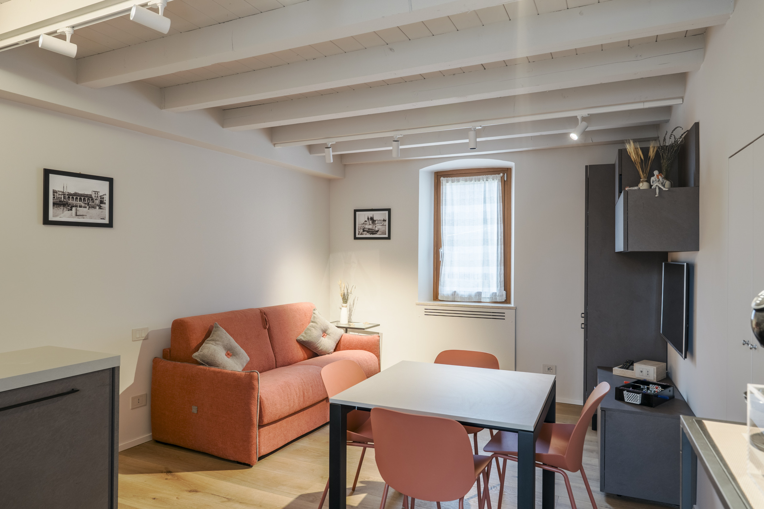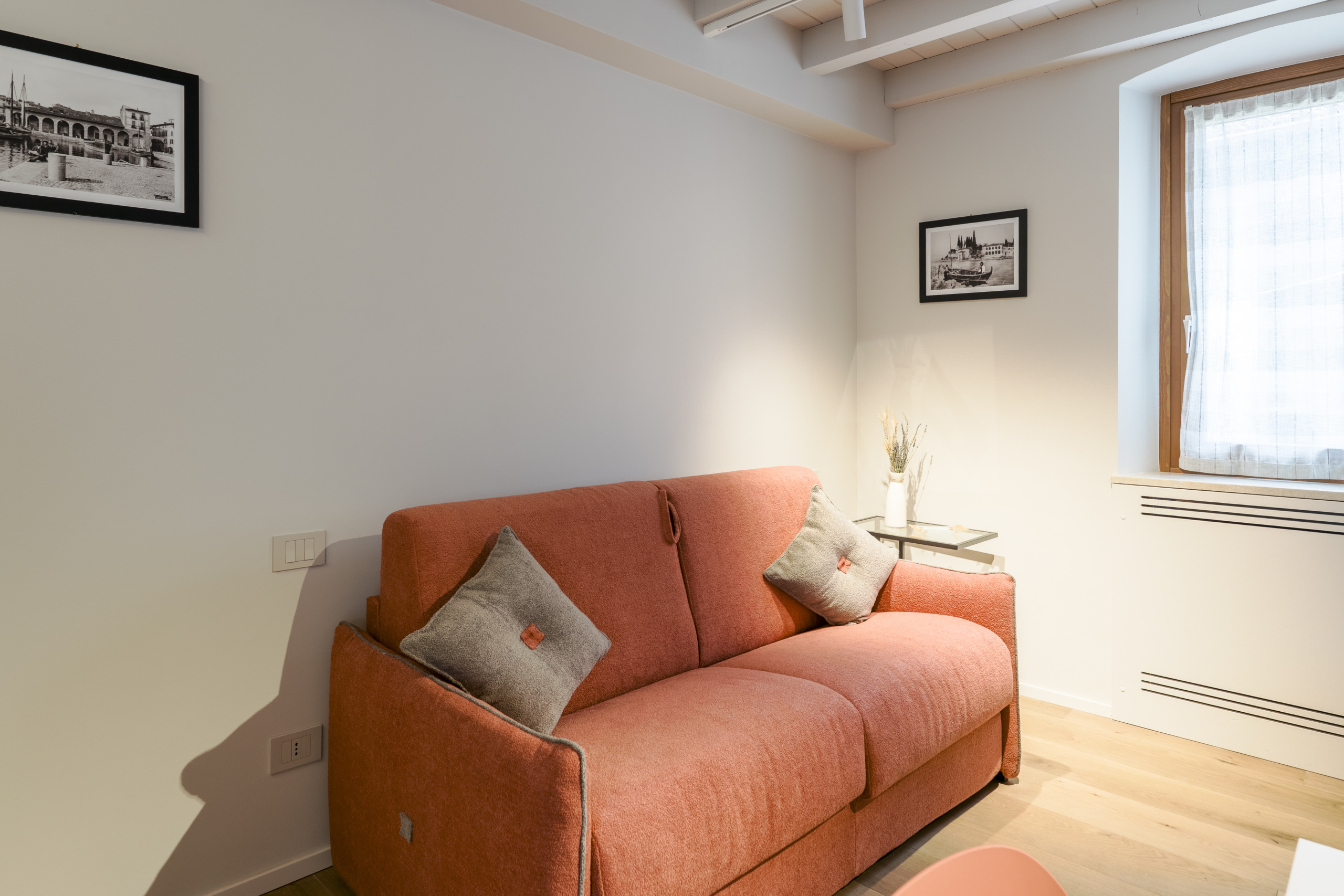El apartamento cuenta con una habitación con cama de matrimonio 🛏️ y un cómodo sofá cama de matrimonio en la sala de estar, pudiendo así albergar hasta 4 personas con total comodidad.